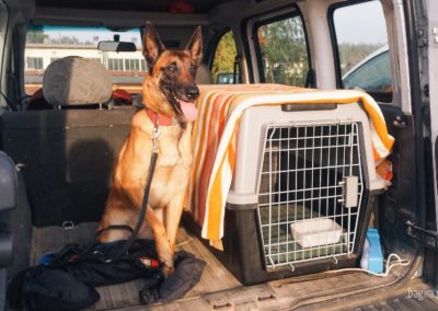 Czystość w aucie, bezpieczeństwo przewozu psów i ludzi, spokój i bezpieczeństwo moich suczek podczas wizyty u nas szalejącej dzieciarni, komfort wyjazdów oraz szukania noclegów, miejsce wyciszenia mojej psiarni w trakcie seminariów/warsztatów, tak mogę dużo jeszcze wyliczać… Generalnie – jest to sypialnia moich panienek, miejsce gdzie mogą być pewne, że nic złego ich tam nie czeka, a spokój, relaks i sen mają zagwarantowane. Przestrzenią tą na co dzień same dysponują – jak chcą leżą nam pod nogami lub w psim fotelu, czy właśnie w otwartych kennelach.